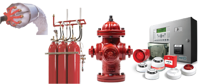 • الطفايات بجميع أنواعها وأحجامها (بودرة – رغوة – CO2 – غازات FM200/NOVEC) .